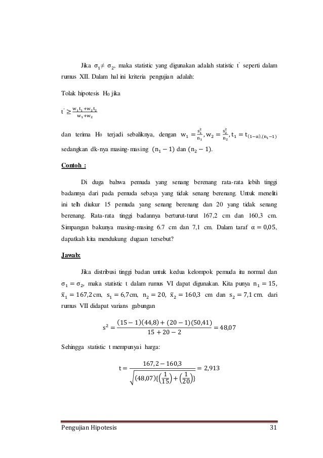 Pengujian Hipotesis (makalah Pengantar Statistika) via www.slideshare.net